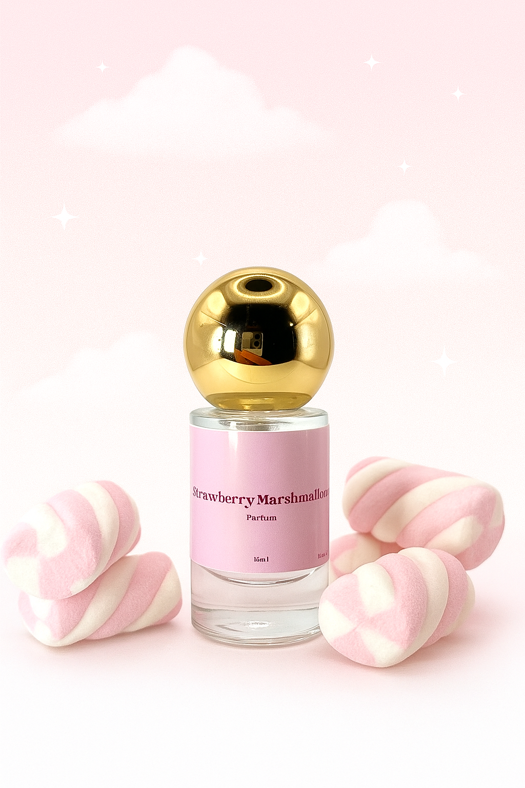 Strawberry Marshmallow: Juicy, sun-ripened strawberries burst with bright, candy-like sweetness, melting into pillowy pink marshmallow for a soft, nostalgic embrace. A final touch of whipped vanilla adds a creamy, delicate warmth, making this scent as light and irresistible as a sugary, pastel-hued daydream.